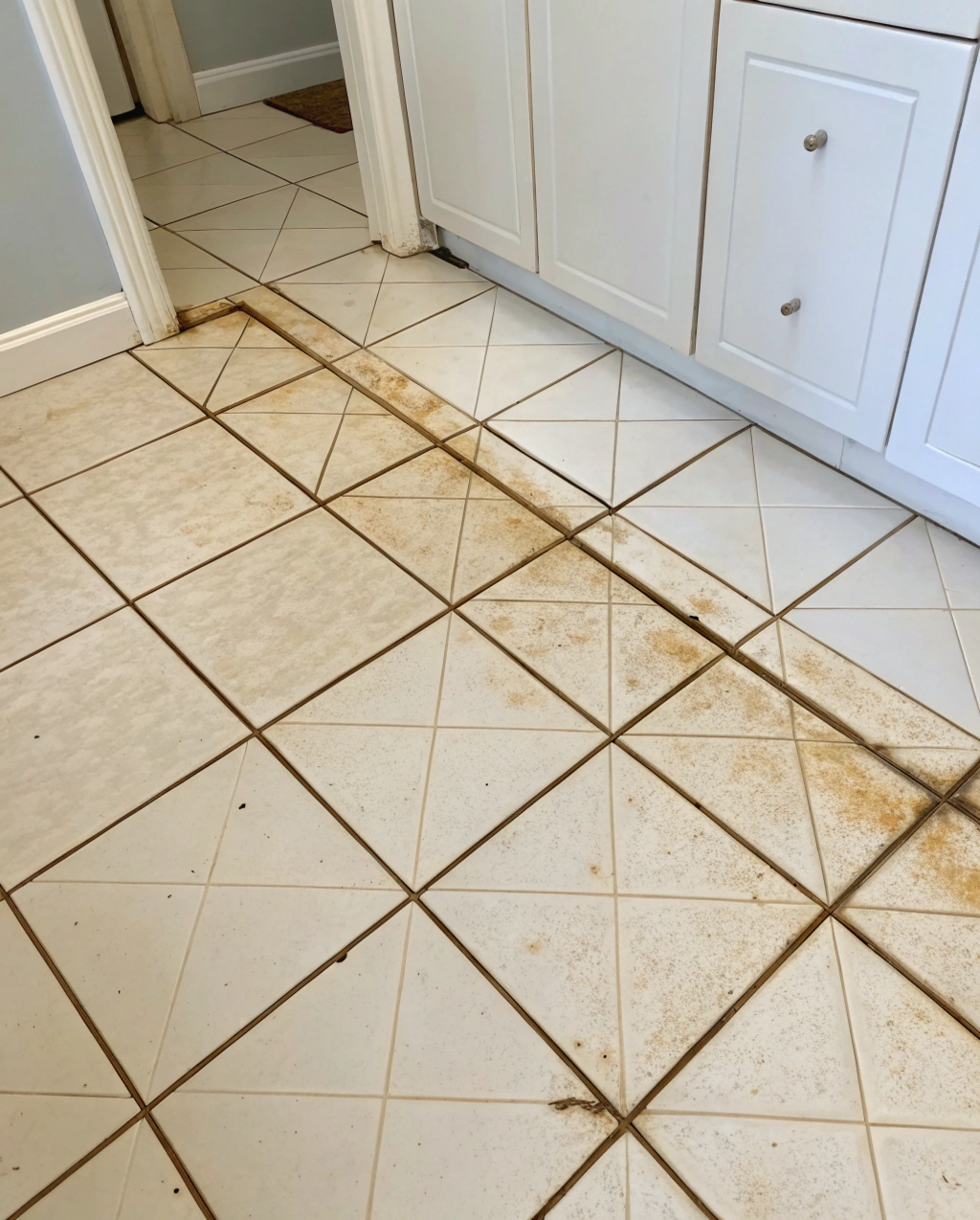 Staining that won’t come out with normal cleaning is one of the clearest indicators. If you’re scrubbing and the discolouration isn’t shifting, it’s likely worked its way into the grout itself rather than sitting on the surface.